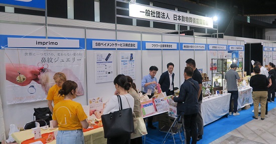 賛助会員10社はペット葬祭に関する物品を各展示ブースにて行い、